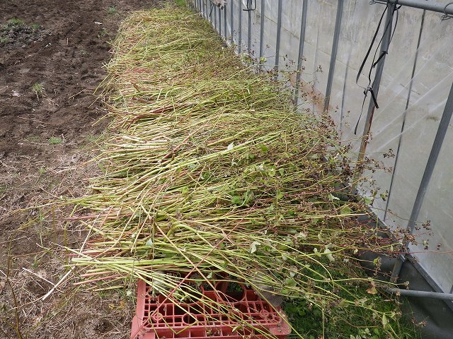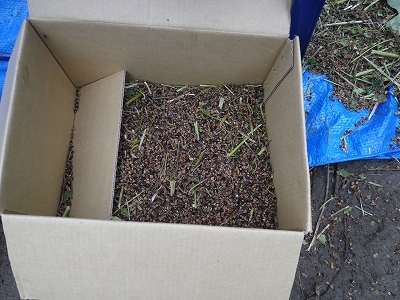コレは楽チン、と思ったら細かい茎もいっしょになって落ちてました。茎の部分は手作業で選別が必要です。