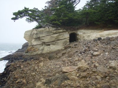 月浜手前の洞窟。