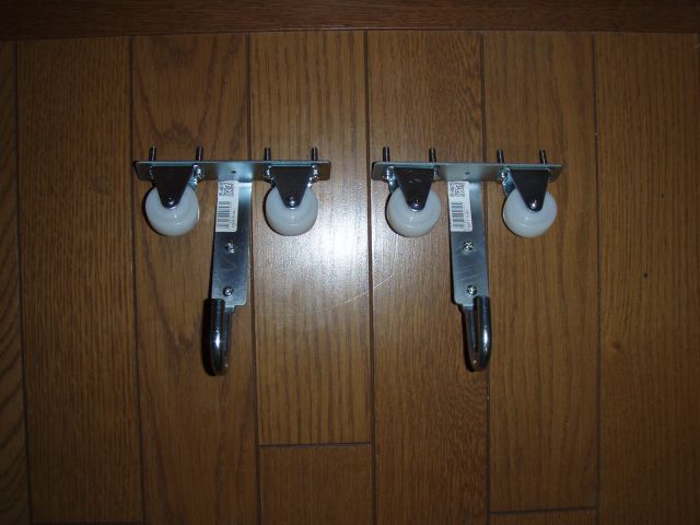 キャスター2個をT金具に取り付けて下へフックを取り付けてみました。