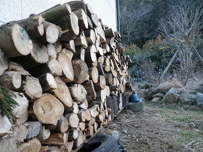こっちは山の倒木やら、立ち枯れの木を引きずり出して玉切りにして積んでおきました。